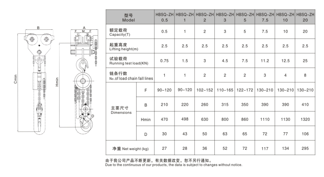 1、開放式框架設計,易清潔。2、可選配限載器。3、自動雙棘爪剎車系統(tǒng)。4、標準配置高強度合金鋼起重鏈條和電鍍鋅手拉鏈條?!?
