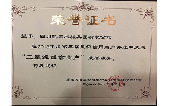 緊跟市場發(fā)展步伐,扎扎實(shí)實(shí)地開展各項(xiàng)工作。2019年1月8日,萬貫集團(tuán)為進(jìn)一步鞏固萬貫五金機(jī)電城誠信體系建設(shè),提升誠信示范市場,知識產(chǎn)權(quán)培育示范市場品牌價(jià)值,增強(qiáng)市場商家誠信經(jīng)營的榮譽(yù)感,助力商家擴(kuò)大經(jīng)營,贏得未來更多財(cái)富,在萬貫機(jī)電城成功舉辦星級信用商戶授牌儀式?!八拇▌P榮機(jī)械集團(tuán)有限公司”誠信經(jīng)營、遵守國家法律法規(guī),無違法違規(guī)行為,無侵犯消費(fèi)者權(quán)益行為和侵犯知識產(chǎn)權(quán)行為,遵守商業(yè)道德,在公平、公開、公正的原則下,經(jīng)萬貫集團(tuán)機(jī)電城審核、評選為星級信用商家。
